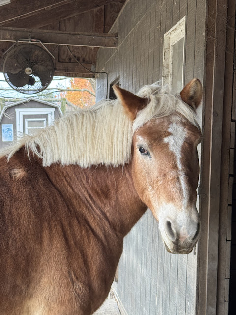 The animals are all doing well.  We had a farrier visit last week.  The boys (Moonie and Red) were both their usual cooperative selves.
